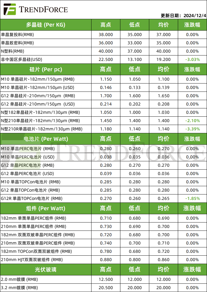 免责声明:TrendForce集邦商榷一直奋发信息的全面性与无缺性,惟以上骨子仅供参考使用,集邦商榷不合任何东谈主的市集操作、投资提议负任何牵扯。]article_adlist-->TrendForce天下光伏产业链价钱趋势